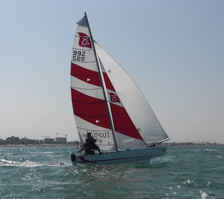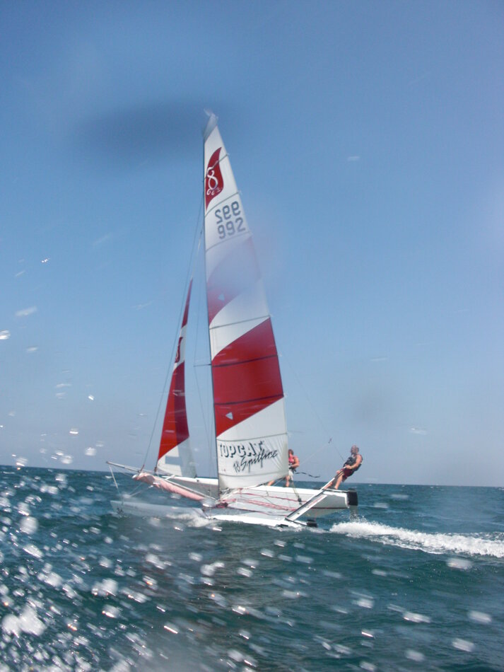 Il Catamarano più grande della flotta. 18 piedi di lunghezza, doppio trapezio e gennaker.